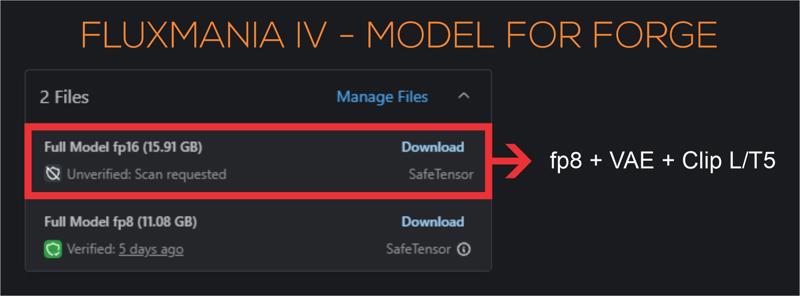 ファイル 15.91 GB : VAE付きの checkpoint fp8 (bf16ではない) & Clip L full fp32
